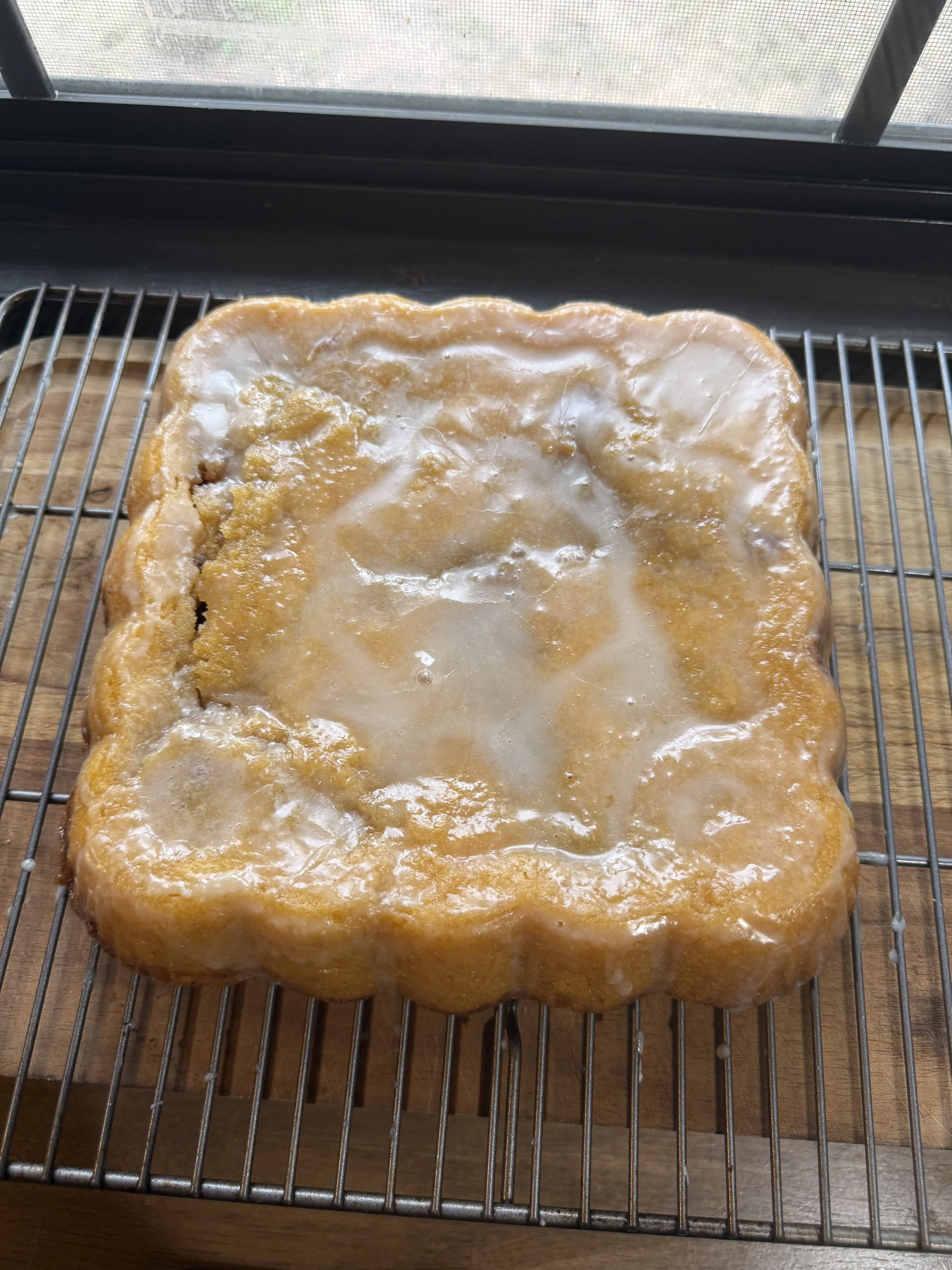 Moist butter cake baked with organic sweet potato, layered with brown sugar & cinnamon, & drizzled with rich vanilla icing.